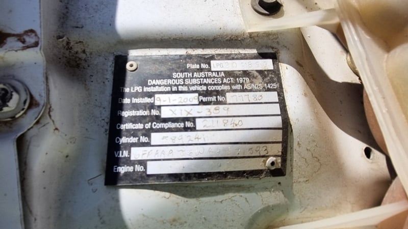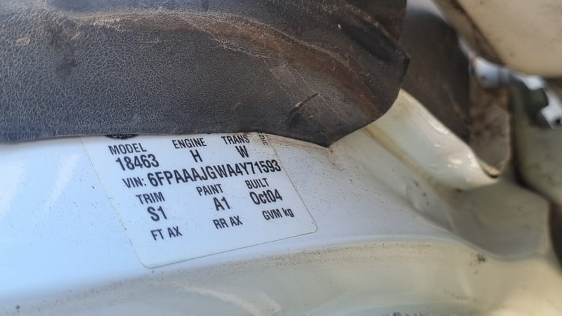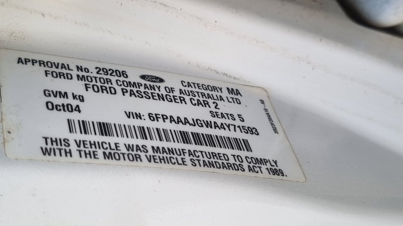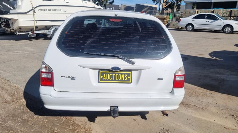 2004 Ford Falcon Year: 2004 Make: Ford Model: Falcon Odometer: 349823km Engine: 6cyl petrol/LPG Engine no: Not sighted Transmission: Automatic Description: Engine turns over but doesn't start, 1 key, no books, driver rear door dent. VIN: 6FPAAAJGWA4Y71593