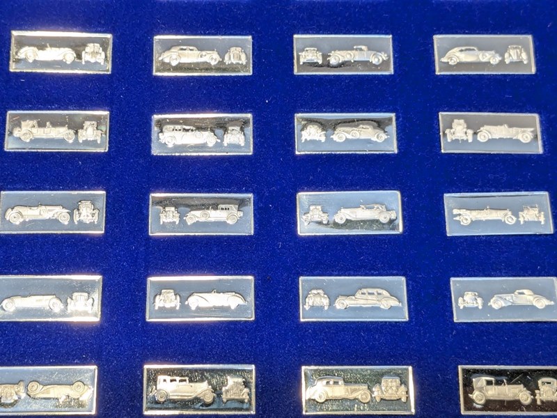 Franklin Mint, The official classic cars silver miniature collection with certificate of authenticity and info cards