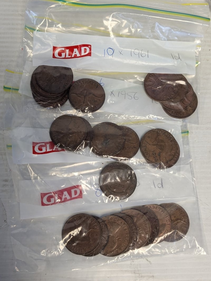 Coins, includes Australian penny, half pennies, one cent and two cent coins Sold as lot