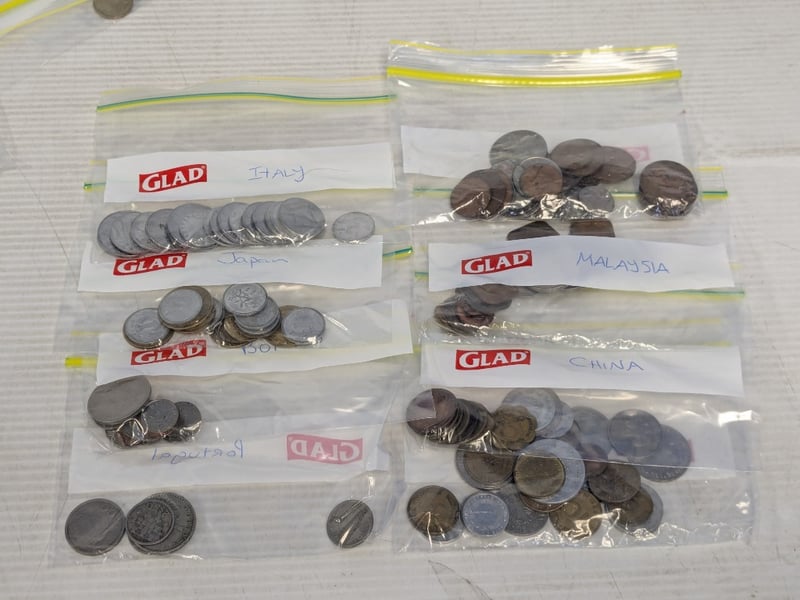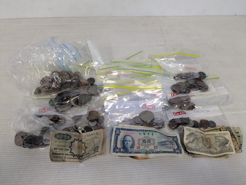 Currency, assorted world coins and banknotes Sold as lot