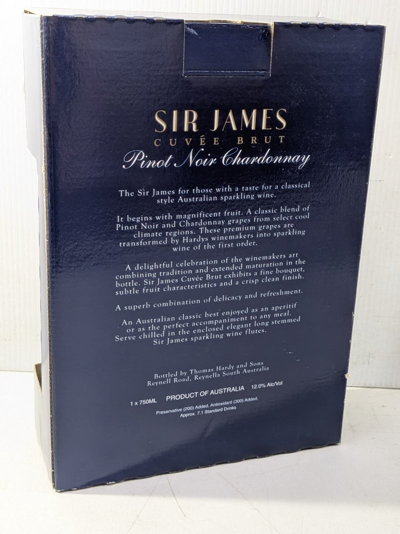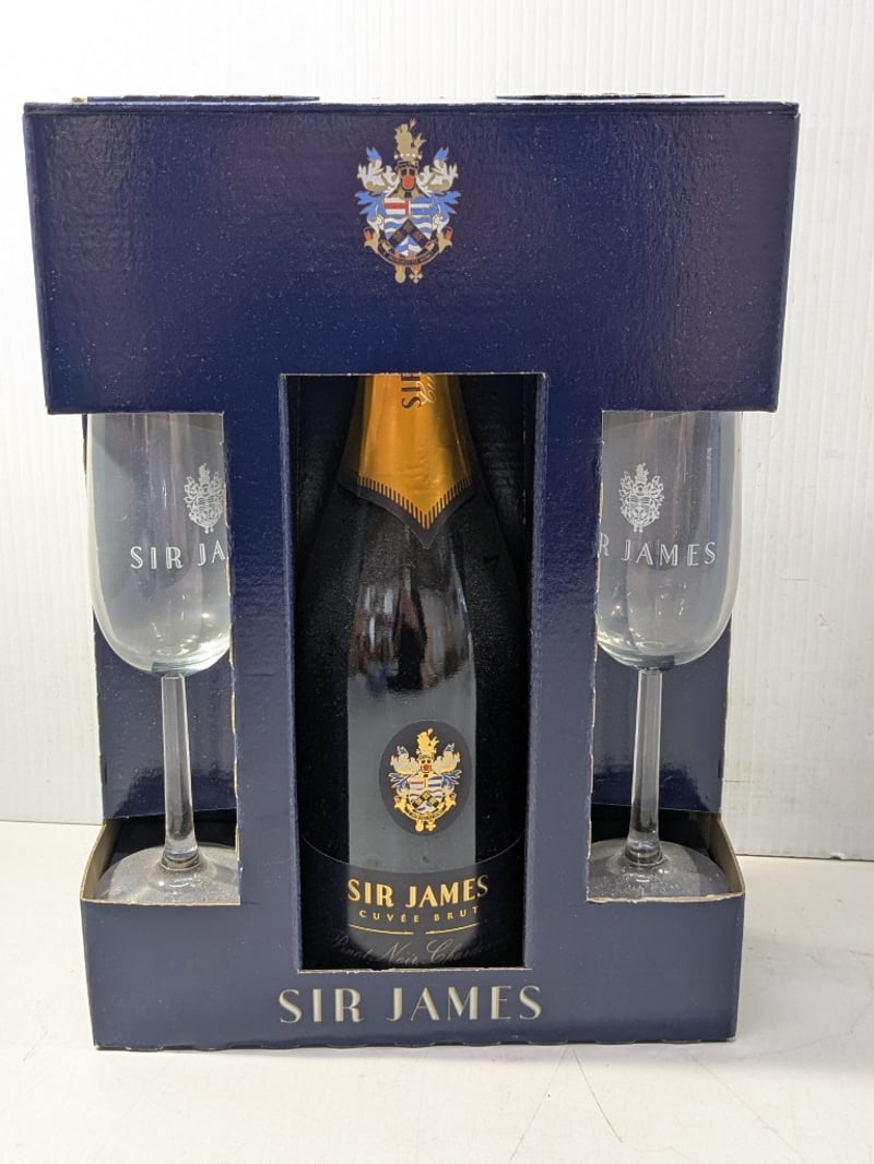 Alcohol, 1 x 750ml bottle of Sir James Pinot Noir Chardonnay with 2 x glasses