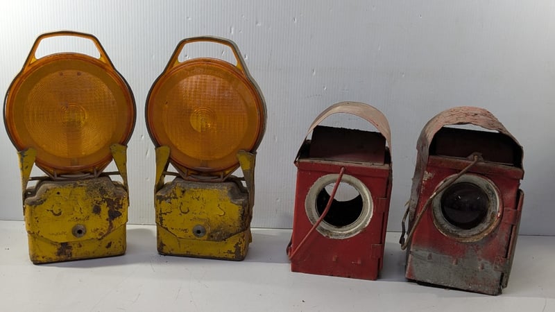 Lamps, including 2 x Artcraft hazard lamps and 2 x roadworks signal lanterns Sold as lot
