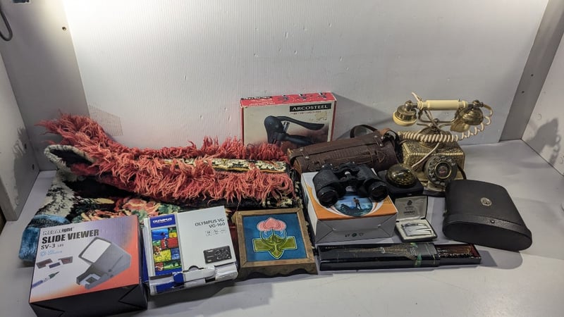 Homewares, including vintage telephone, binoculars, digital camera and more Sold as lot