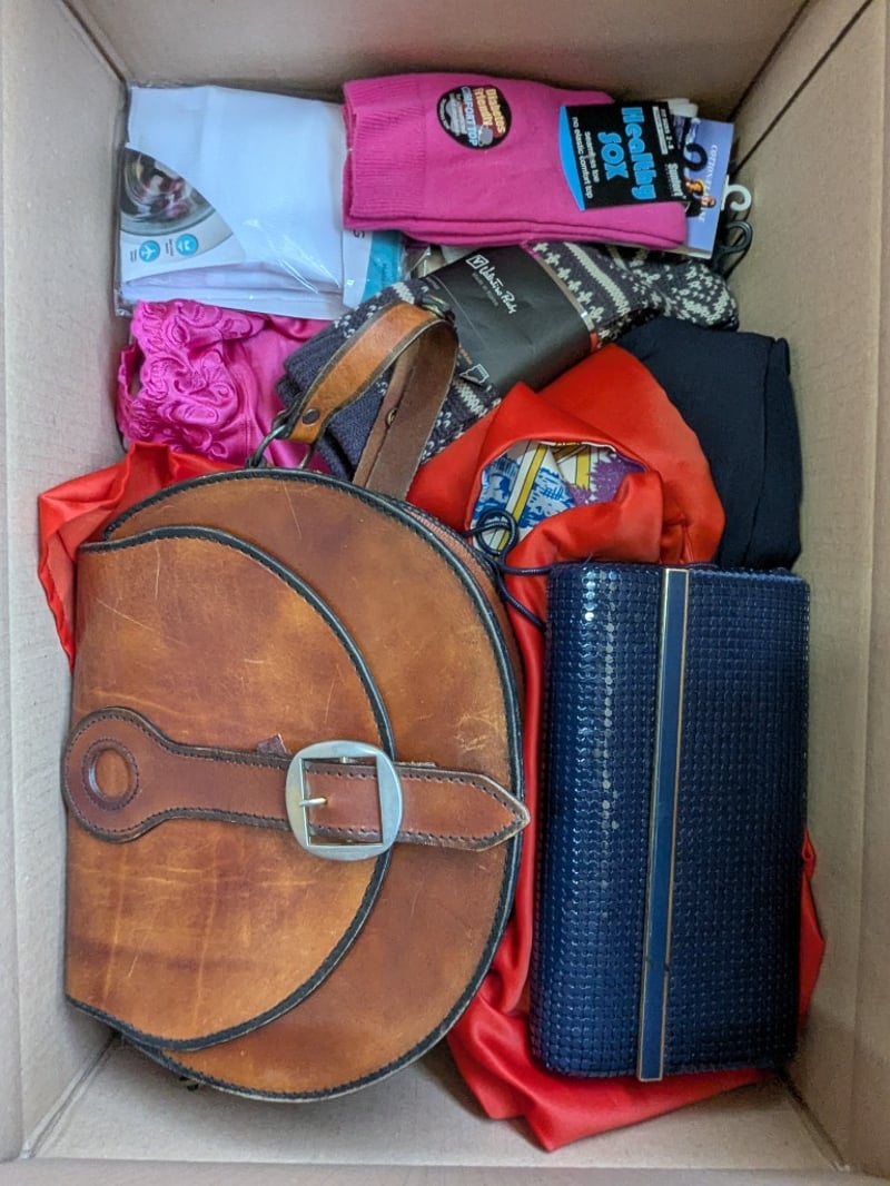 Clothing, including Hush Puppy women's size 8 shoes, assorted clothing and more Sold as lot