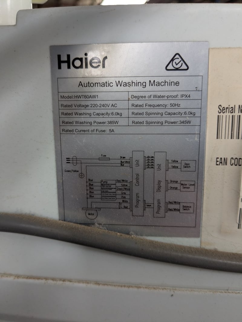 Washing machine, Haier 6kg top load model no. HWT60AW1