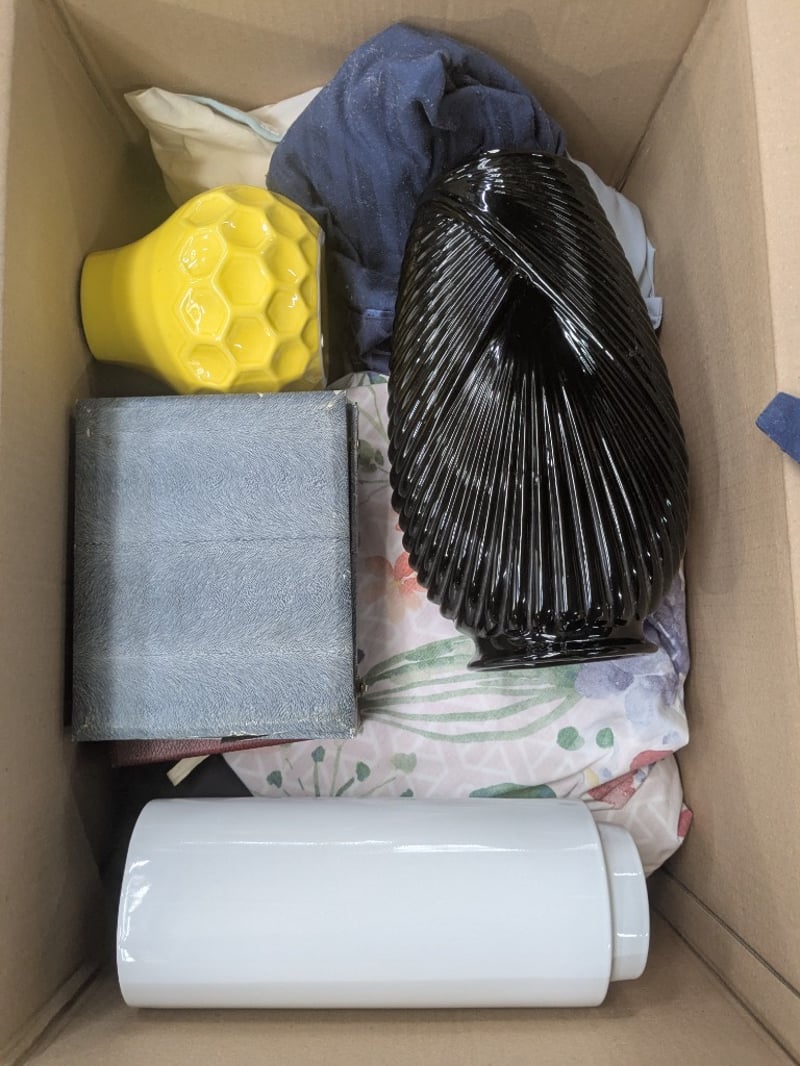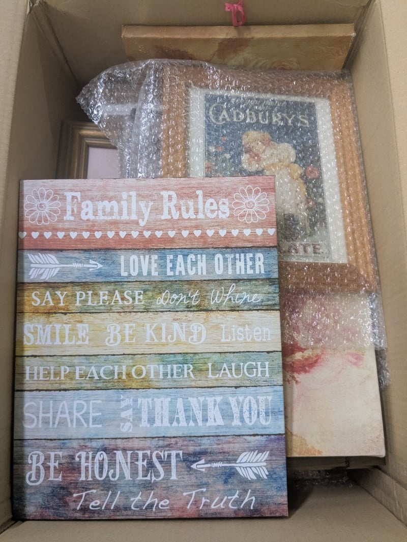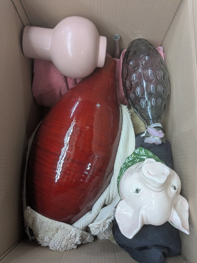 Homewares, 9 boxes including artwork, vases, ornaments, glassware and more Sold as lot