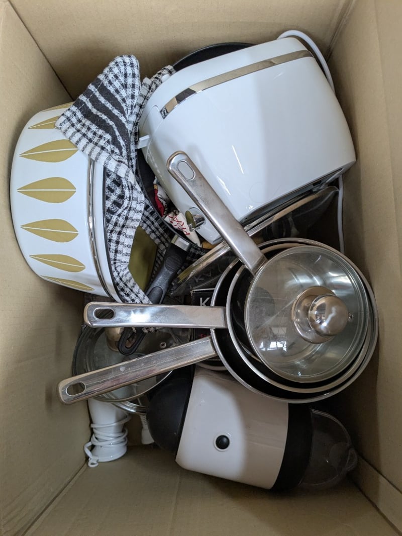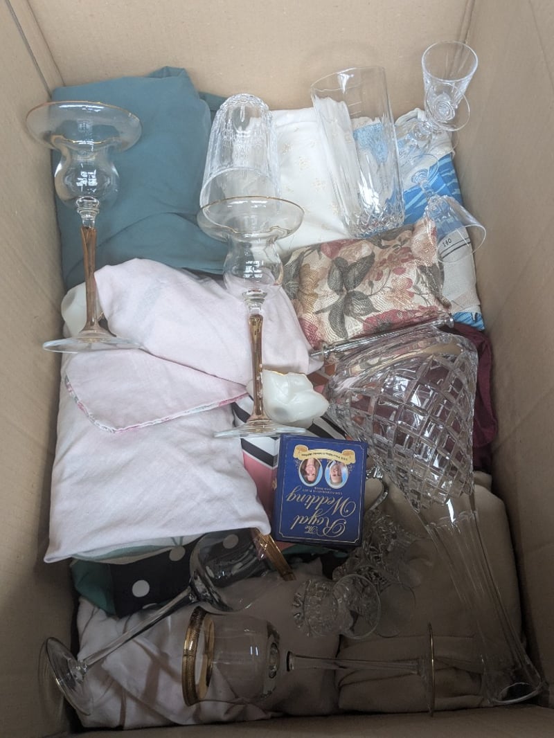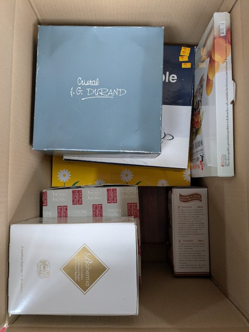 Homewares, 9 boxes including assorted glass/ crystal ware, appliances and more Sold as lot