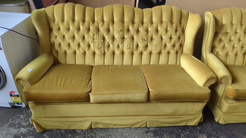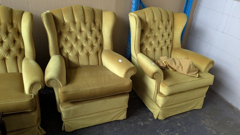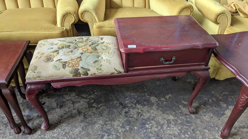 Furniture, including 3pc lounge suite, telephone chair and small tables Sold as lot