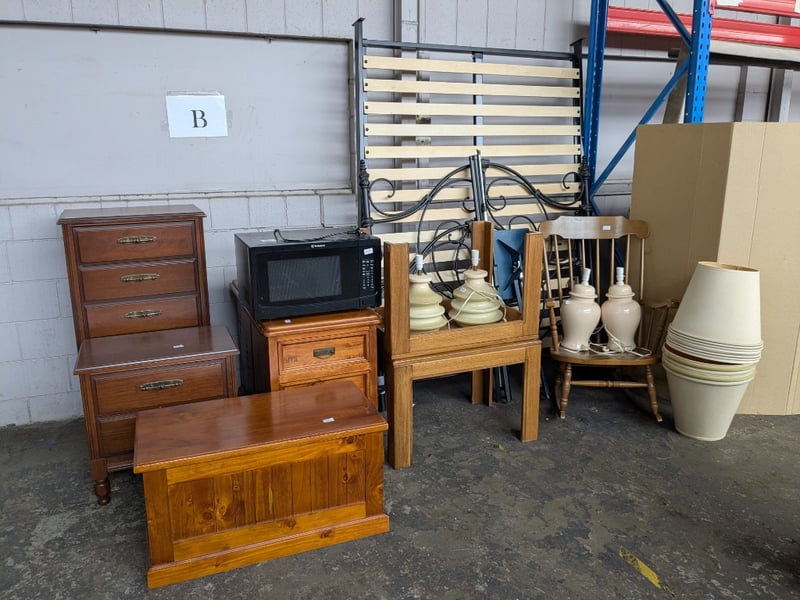 Homewares, including side tables, lamps, Westinghouse microwave and more Sold as lot