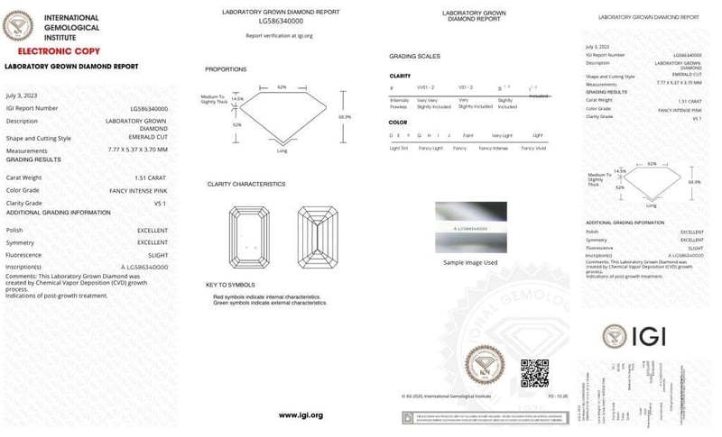 Igi Certificate # Lg 586340000 Laser Inscribed : Labgrown Igi Lg 586340000 Polish : Excellent Symmetry : Excellent Flourescence : Slight Type : Cvd