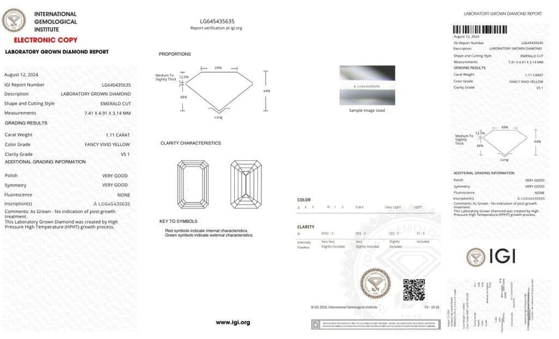 Igi Certificate # Lg 645435635 Laser Inscribed : Labgrown Igi Lg 645435635 Polish : Very Good Symmetry : Very Good Flourescence : None Type : Hpht