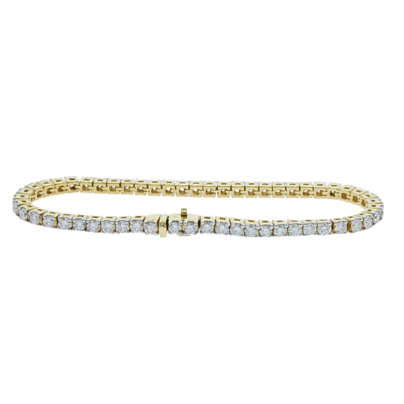 5.06 CARATS YELLOW GOLD LAB GROWN DIAMOND TENNIS BRACELET (STAMPED 9K) WITH A BOX CLASP AND SAFETY LATCHES