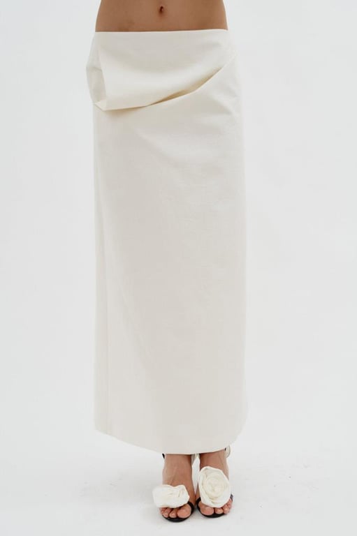 RRP $1750 Size 34 Magda Butrym Silk Draped Midi Cream Skirt