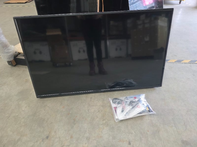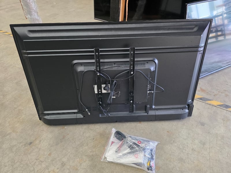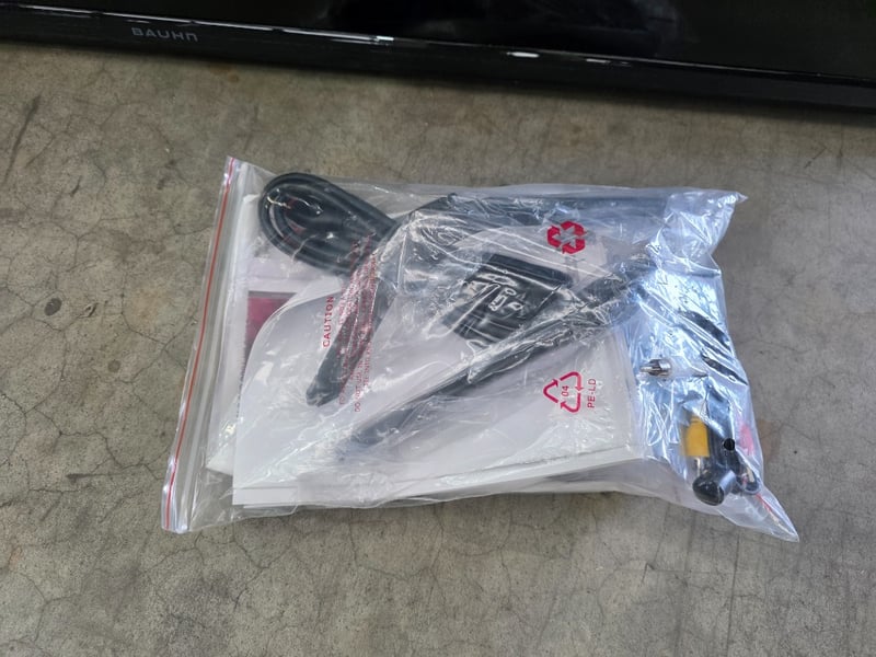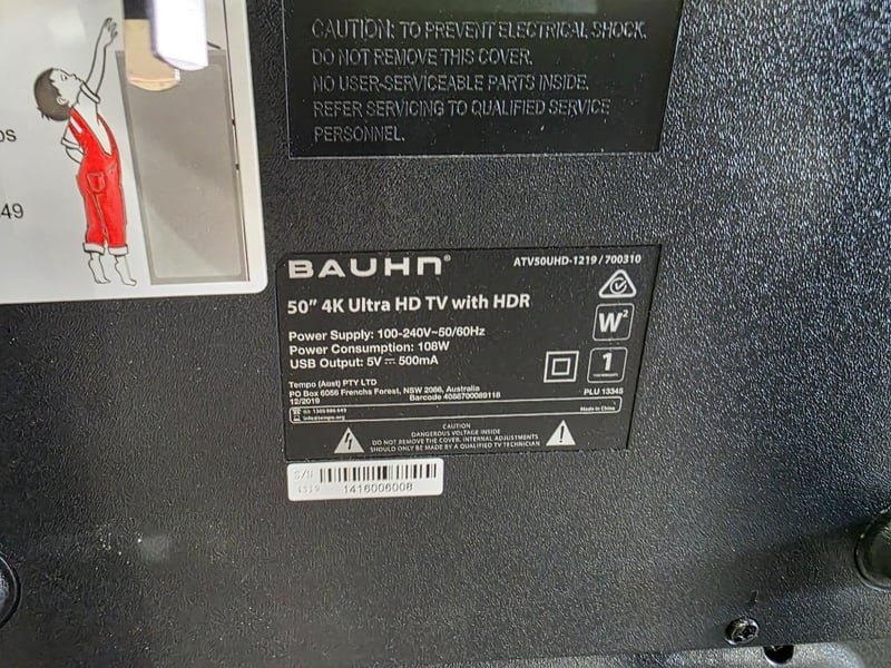 Bauhn 50" 4k ultra hd TV with hdr Wall mount parts on back comes with manual bag and spare cords No remote