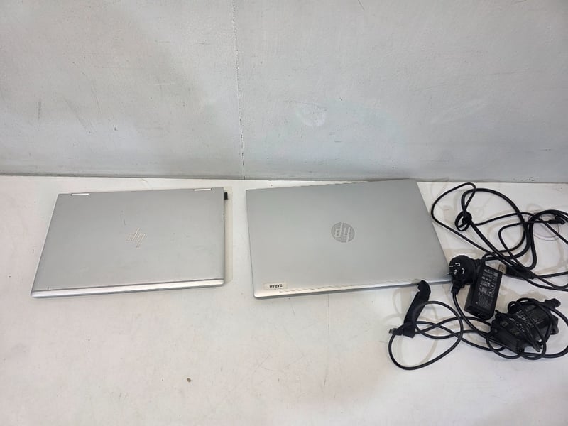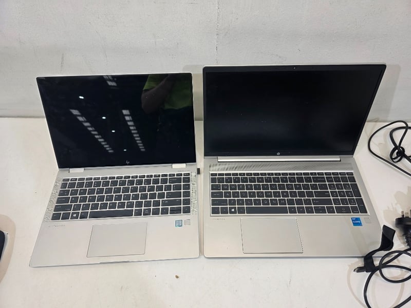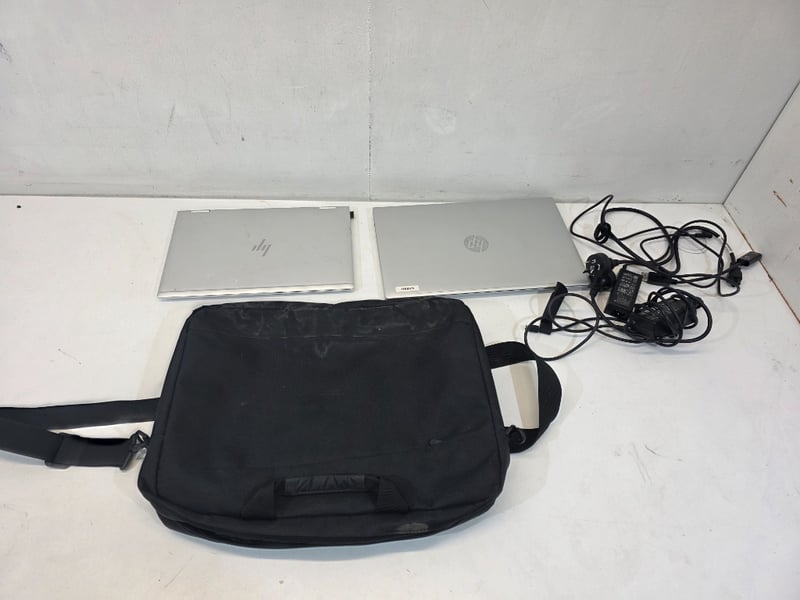 Pair of hp laptops probook and elitebook with bag, and cords