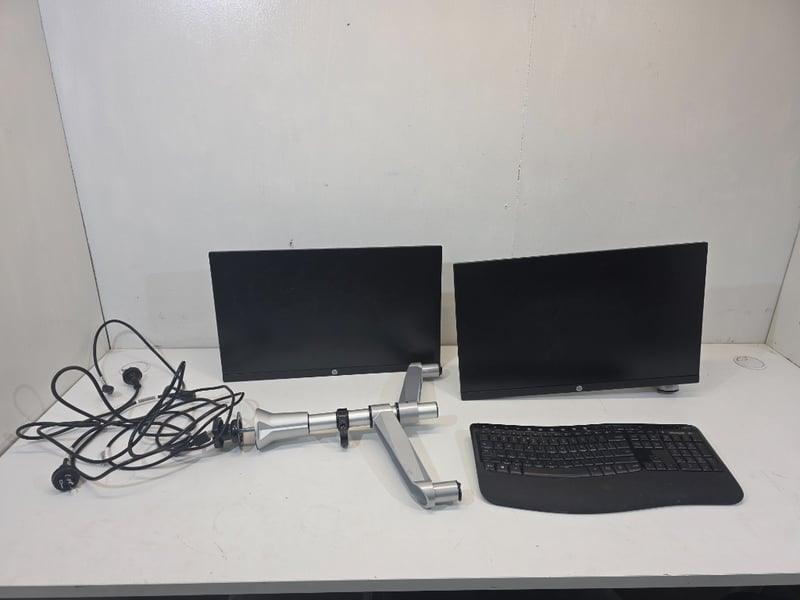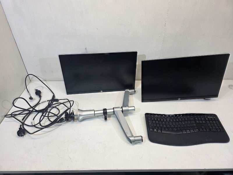 2x HP 244 23.8inch display monitorsWith Microsoft keyboard, desk stands, power cords and 1 hdmi cableSOLD AS LOT