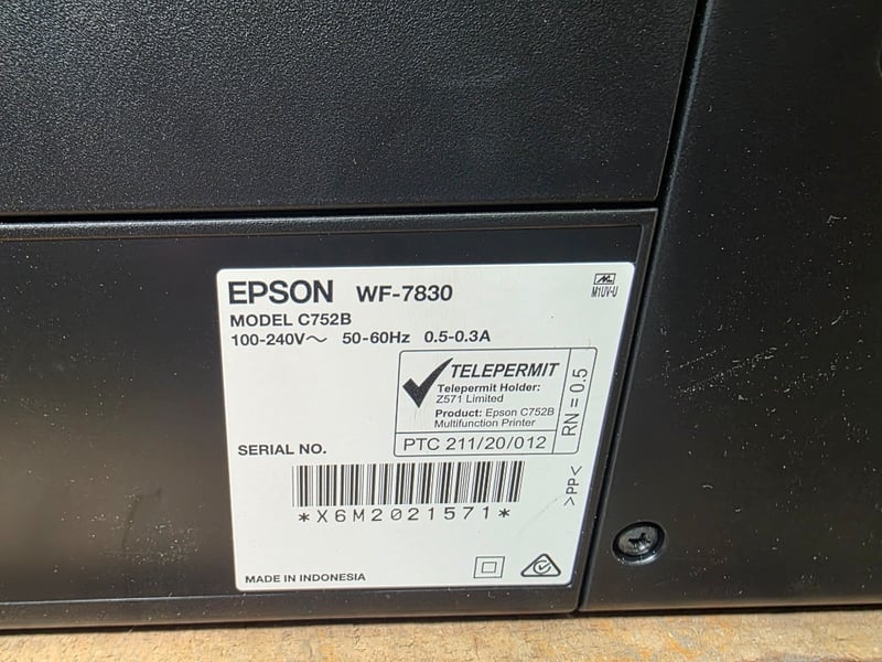 Epson workforce WF-7830Model: C752BSerial : X6M2021571