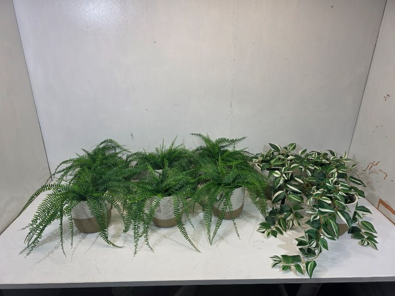 Artificial plants and pots QTY x9 SOLD AS LOT