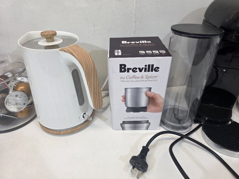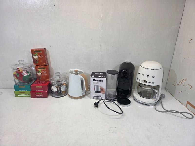 Smeg, espresso, breville coffee machines with pods tea bags and an anko kettle