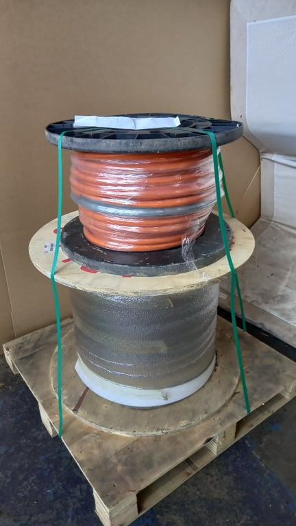 Wire Cables, 2 rolls of industrial wire Cables World Wide Cables #1 SKU 1316UA - 2C+E 16mm2 BC Cl2/XLPE/PVC X90 1kV O/C#2 SKU 1335UA - 2C+E 35mm2 BC Cl2/XLPE/PVC X90 1kV O/CSold as lot