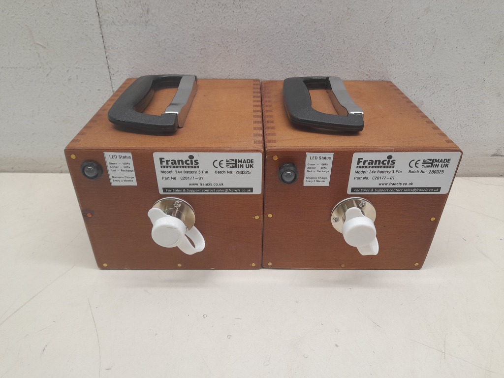 Battery, Francis Searchlights 2.4V Battery 3 Pin C20177-01 Wood Box, Marine Light Spare, Qty 2Note: Item is untested Sold as lot