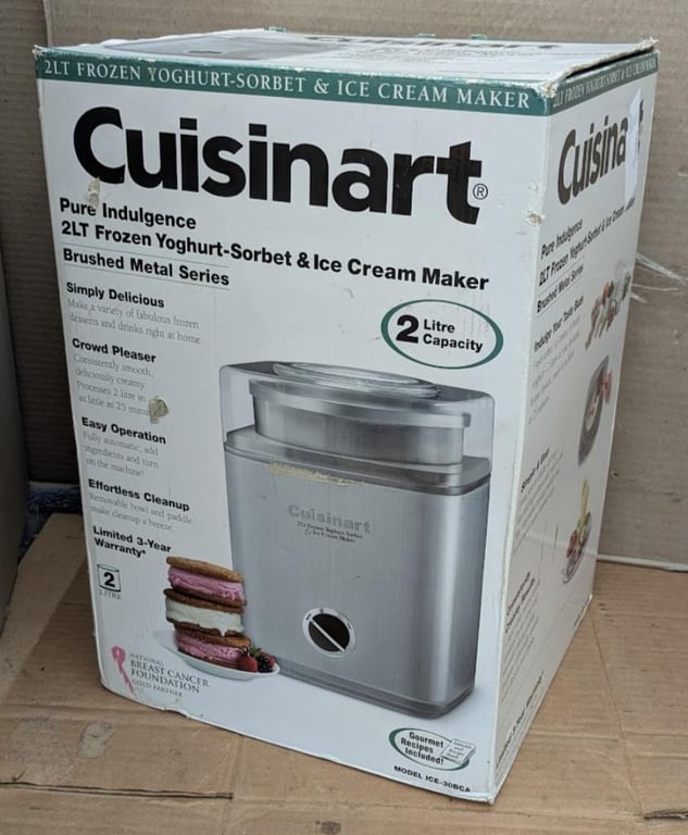 Cuisinart 2 litres frozen yoghurt, sorbet and icecream maker machine brush metal series New to Box