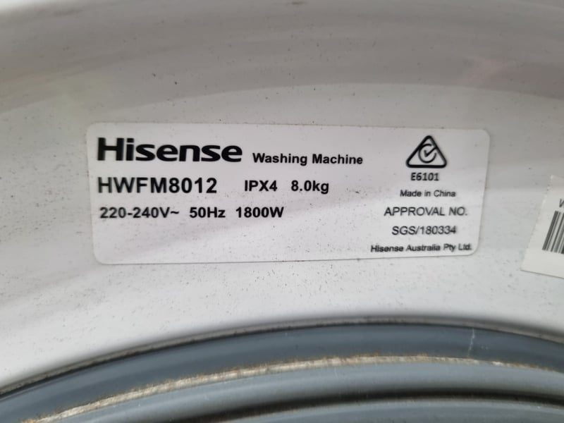 Hisense Washing Machine, 8kg capacity Model:HWFM8012 Dimensions: 57cmx60cmx85cm