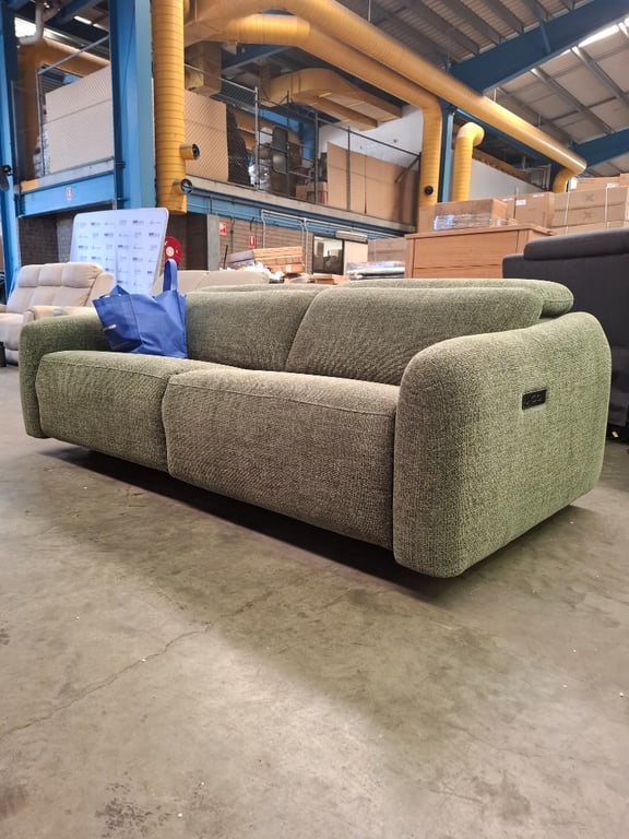 2 Seater Electric Recliner, Fabric Upholstery, Colour: Moss, Push Button Controls, Dimensions Approx: 200cm(W) x 105cm(D) x 75cm(H) NOTE: GENERAL WEAR