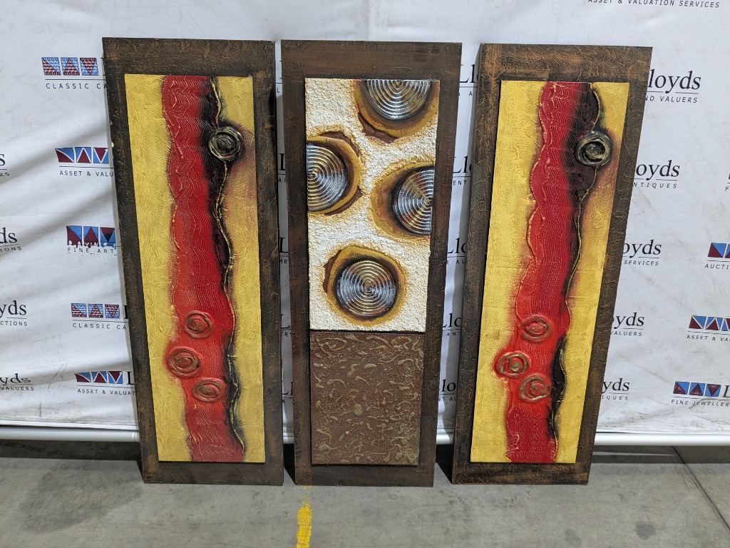 ASSORTED MIXED MEDIA PAINTINGS ON TIMBER BASE