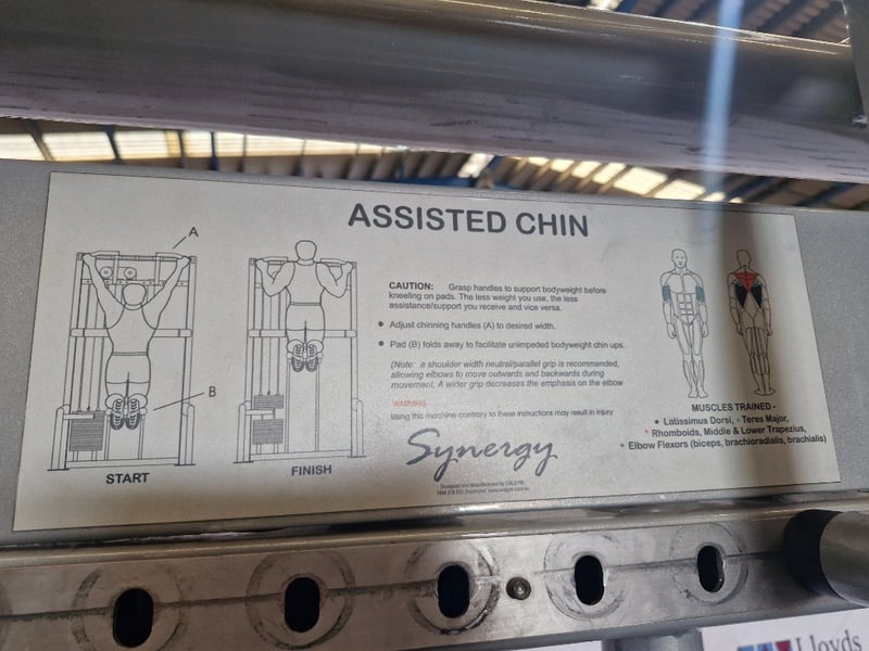 Assisted Chin up and Dip Machine, Synergy, includes weight stack NOTE:WEAR to item