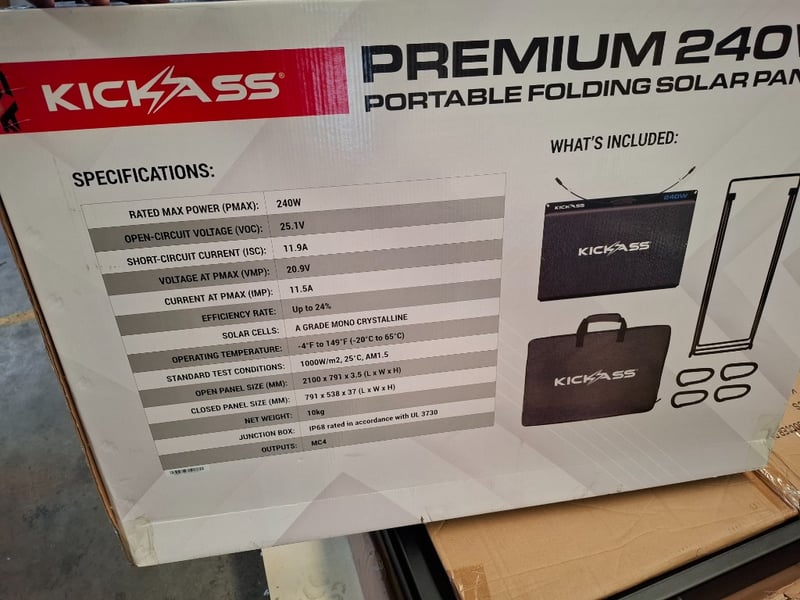 RRP$679.95, KickAss 12V 240W Premium Folding Portable Solar Panel, Model: KAFSP240