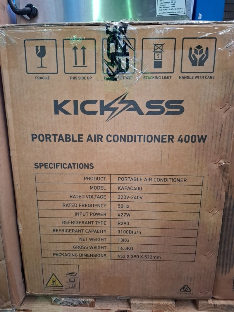 RRP$699.00, KickAss 400W Portable Air Conditioner For Camping, Model: KAPAC400