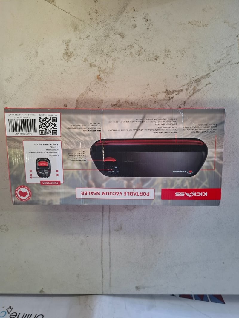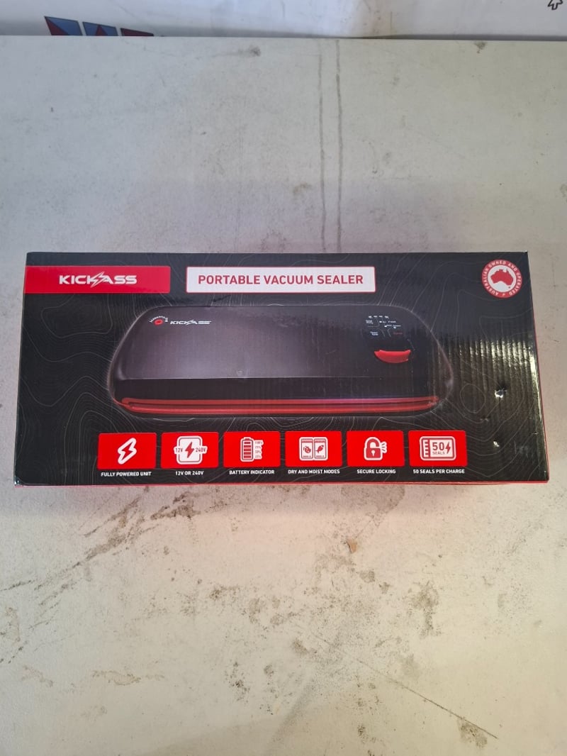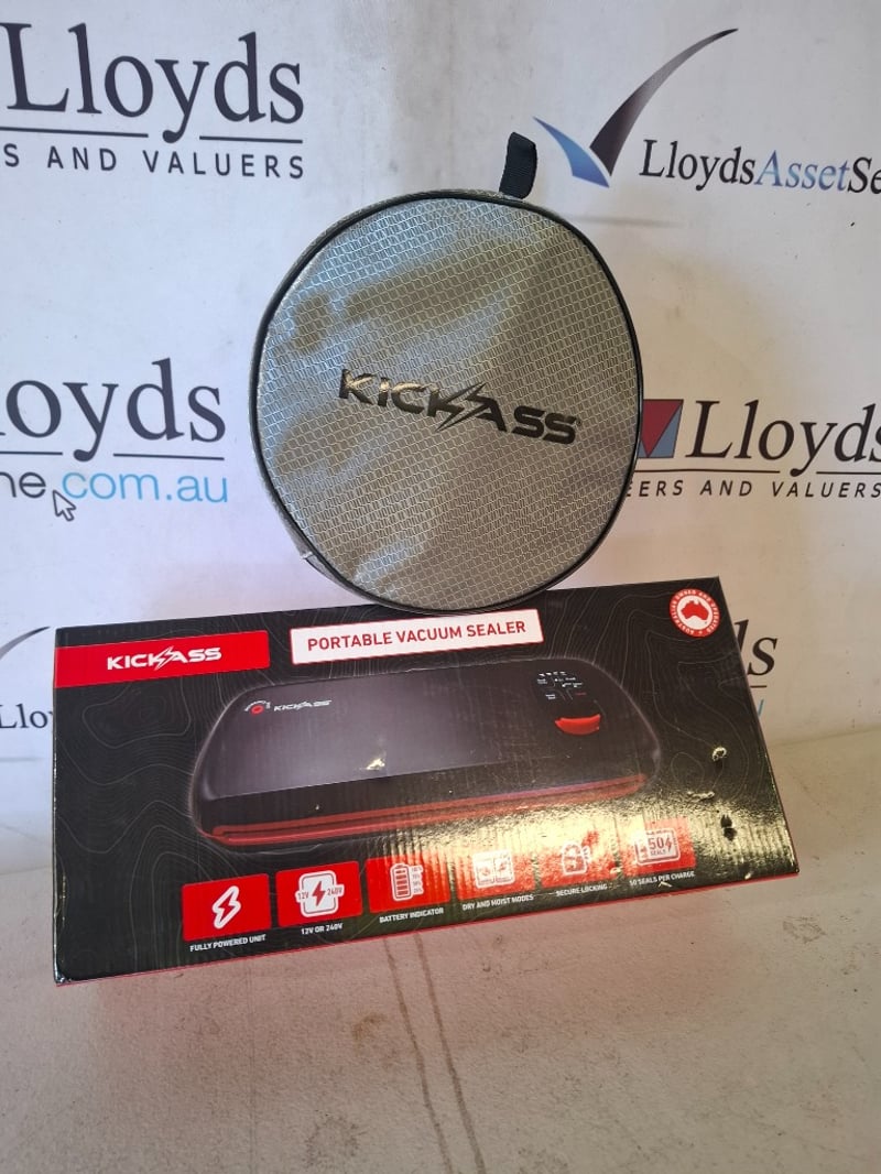 KickAss, portable camping shower Model:KASWRRCG & Portable vacuum sealer Model: KAVS12240V-LION