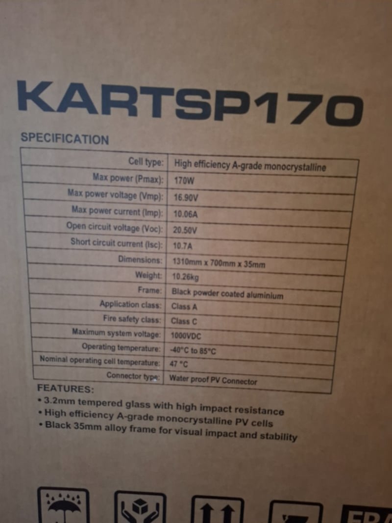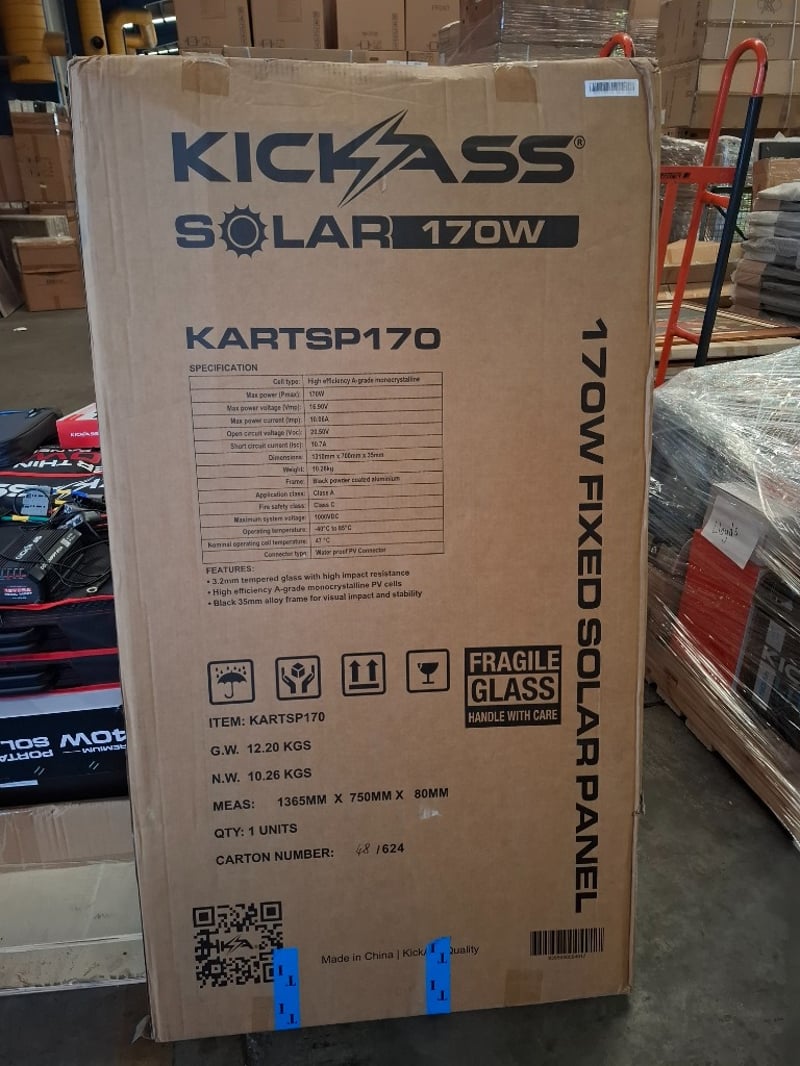 RRP$229.95, KickAss 12V 170W Fixed Solar Panel, Glass Roof Top, Model: KARTSP170