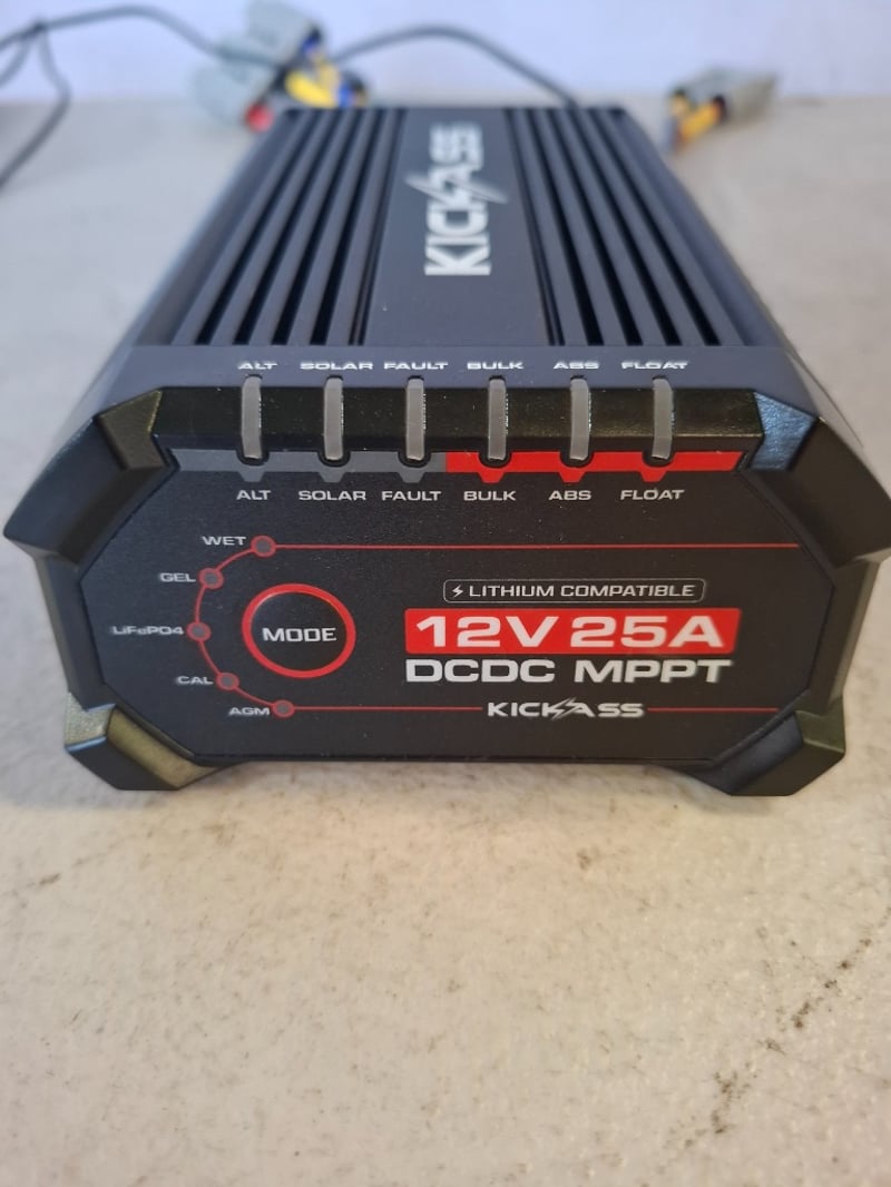 RRP$549.95, KickAss Smart 12V/24V 25A DCDC Charger With Solar MPPT + Integrated Bluetooth + Pre-Wired Anderson, Model: KADCDC25ABT