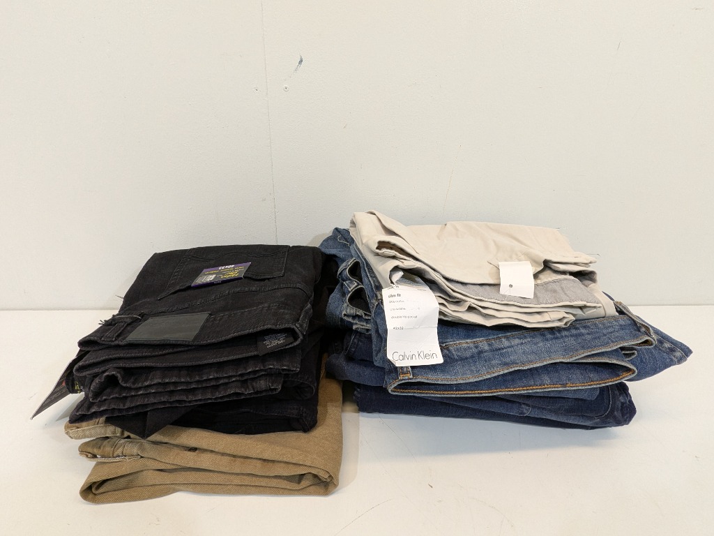 10 Pack of Brand New Urban Jeans, Jack Stone, Calvin Klein & Levis Pants Sizes Fits 24,44/48,40x33