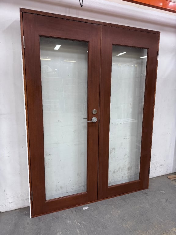 Door, Brown Timber Frame, Glass Door, Silver handle.