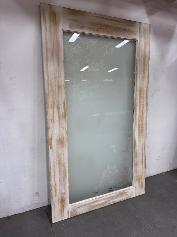 Door, Timber Frame, White Sanded style, Frosted glass, floral pattern.