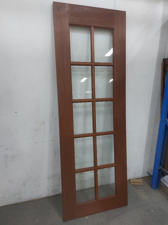 Door, Timber, Rectangle Glass Panels, Rich Redish/Brown Oak Style,