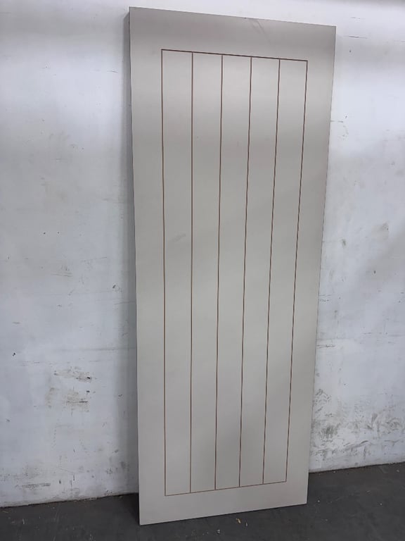 Door, Classic Timber Frame, Striped Pattern, Off White Colour.