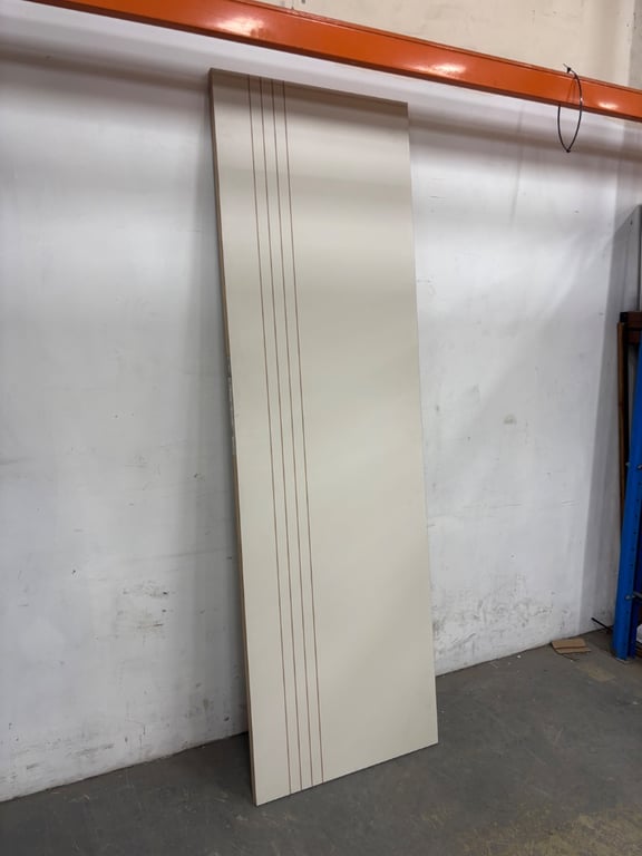 Door, Timber Frame, Vertical Striped Pattern, Off White Colour.