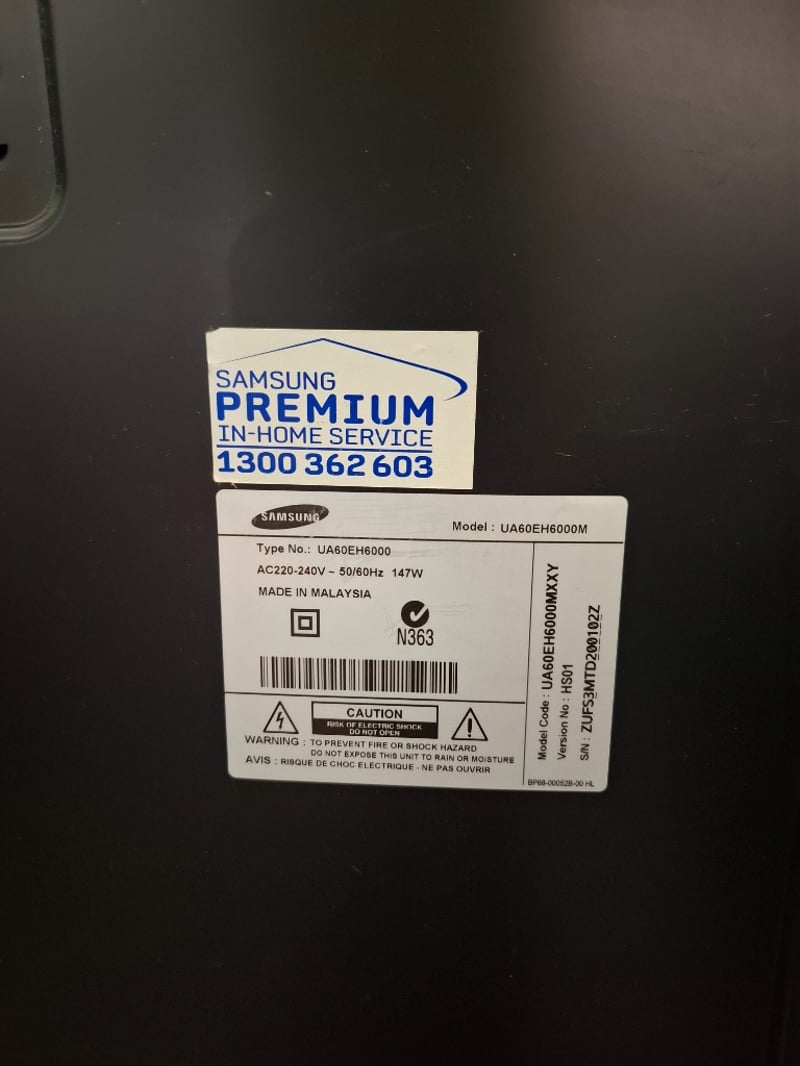 Samsung UA60EH6000 Series 6 60 Inch 153cm Full HD LED LCD TVBrand: Samsung Model: UA60EH6000NOTE: INSPECTIONS HIGHLY RECOMMEND