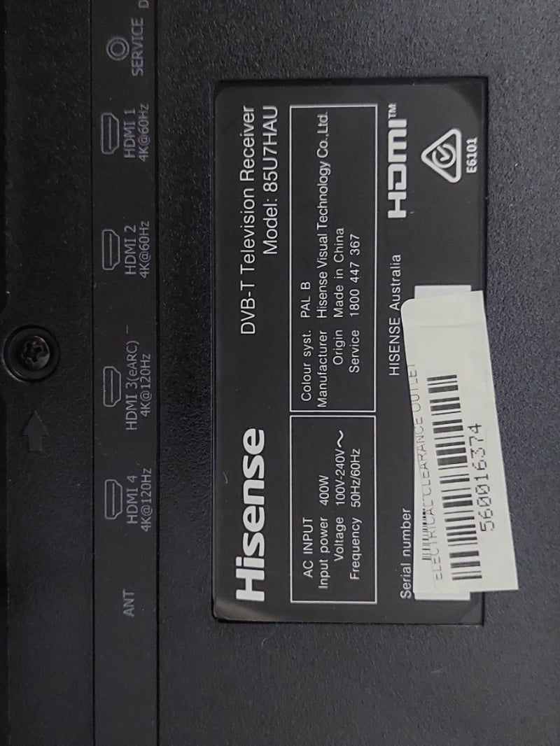 RRP: $3388, Hisense 85 Inch 4K ULED Smart TV, Model: 85U7HAUWith the 85U7HAU 85 Inch ULED 4K TV SERIES U7HAU, experience the most entertaining cinematic view and watch your favourite movies, dramas, and sports with enhanced convenience. This ULED 4K TV uses more than one billion shades to display a variety of tones and hues giving you more natural images. The ULED TV further highlights vivid details with the high-definition adaptive technology that takes your experience to the next level by understanding the brightness in your space. The Hisense 85 Inch TV 4K ULED comes with a remote controller that allows you to surf various programs and switch between options in an instant.Hisense 85U7HAU 4K TV gives you the best gaming experience with the Game Mode Pro with HDMI 2.1 enhancing your chances to win every time with the fast-paced system performance. The Dolby Atmos creates the perfect sound experience with breathtaking realism giving you the best quality entertainment experience. Dimensions: W 1903mm x H 1088mm x D 80mm