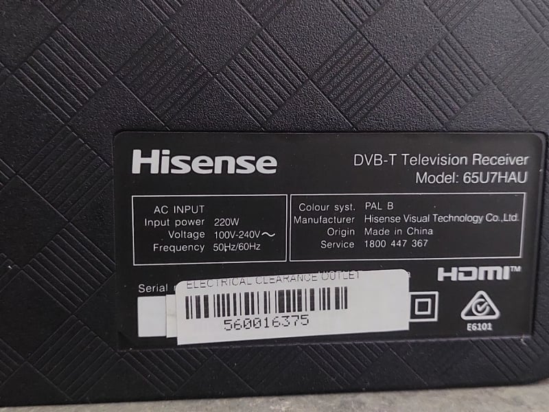 RRP: $1848, Hisense 65 Inch 4K Smart ULED TV, Model: 65U7HAUHisense brings you a fine collection of home appliances with elegant design and practical features. Stream across various entertainment platforms with the 65U7HAU 65 Inch ULED 4K TV SERIES that enhance the picture quality scene-by-scene with the hi-view engine powers and offer you a premium entertainment experience. The Hisense U6G ULED TV has an advanced image processor that adjusts colours for more natural images and comes with a multi-HDR function for a sharp picture. The ULED TV comes with a smart remote control that has sturdy buttons to change channels, volume, and other features as per your choice just with a soft touch. Hisense 65U7HAU 4K TV features a 65 Inch Inch diagonally measured LED display screen with the VIDAA U6 smart Tv operating system.Dimensions: W 1449mm x H 835mm x D 78mm