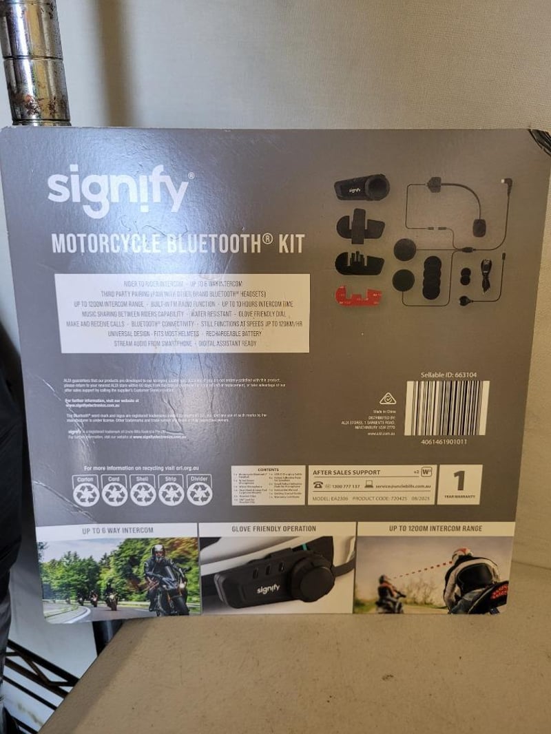 1x SIGNIGY motorcycle bluetooth kit wireless audio streaming, RRP $79, NEW factory sealed in pack, 1x SONY headphones, MDR-ZX110AP, NEW in box, 1x DELTA SMART LOCK portable key safe NEW factory sealed in box