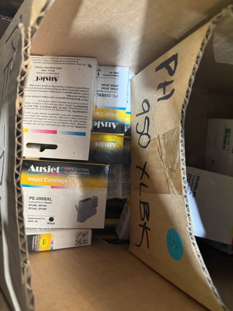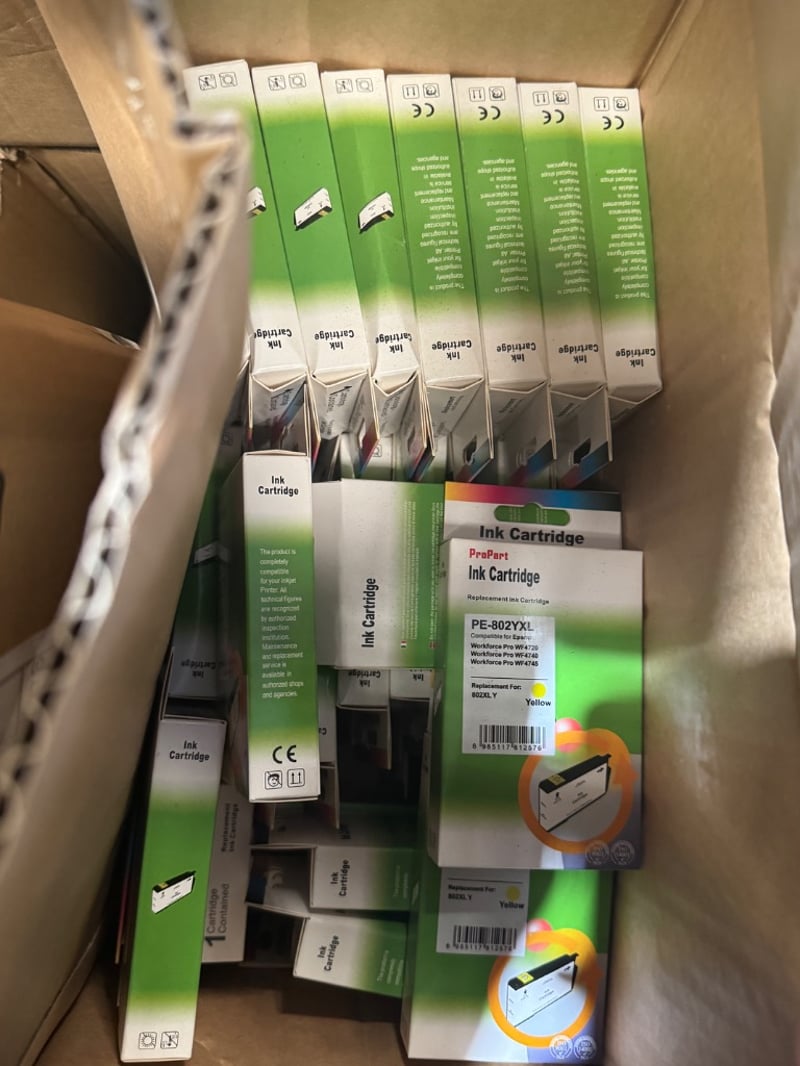 Assorted Lot of Inkjet Cartridges, Laser Toner Cartridges, and more. Sold As Pallet Lot. Note: Inspection Recommended