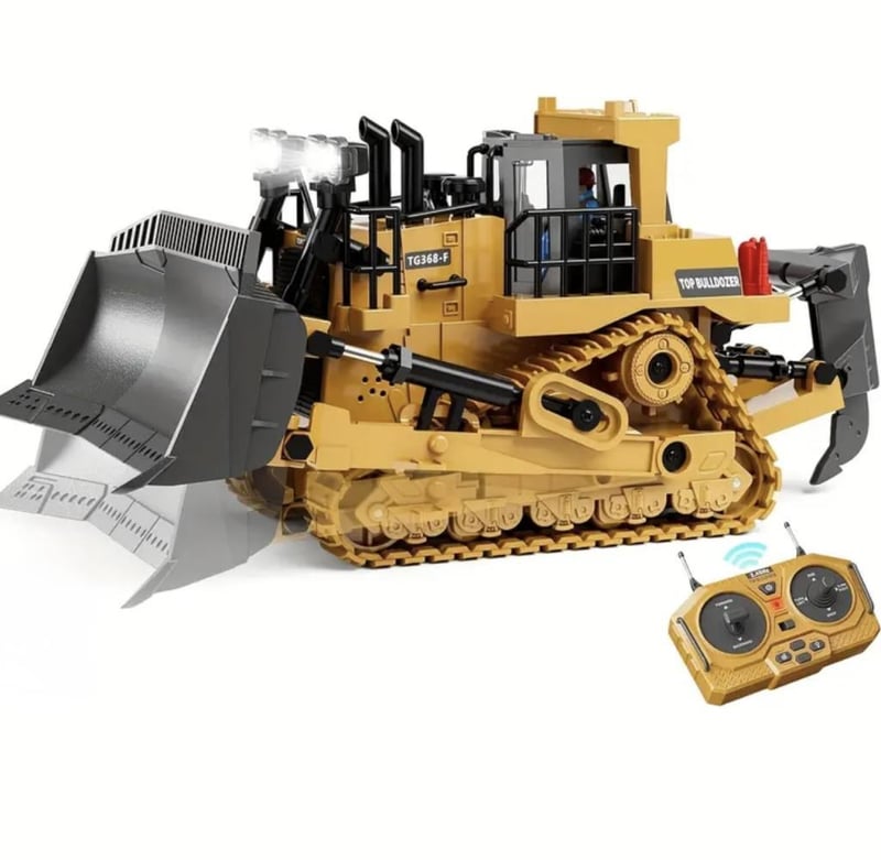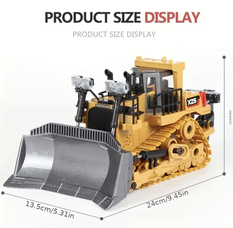 9-Channel RC Bulldozer Truck with Alloy Metal Body, Rechargeable Battery & 2.4Ghz Remote Control - Realistic Moving Arms, & Sounds