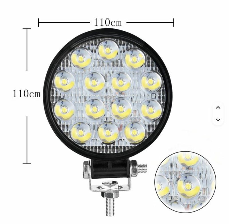 BUNDLE OF 2 Bright 4 Inch 14 LED’S Round LED Work Light 9-80V Light Interior Exterior Spotlight with DRL 4x4 Tractor 42w Headlight Spotlight for Truck ATV 4 approx. 114mm Round Modes Mode IP67 water/dust proof All approx. 30000 Life Hours All Attachment Accessories Included (BRAND NEW IN BOX)