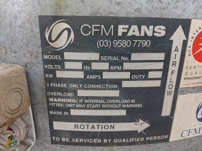 Commercial Extractor Fan, CFM FANS, Model MCV450, Dimensions 78cmW-D×42cmH