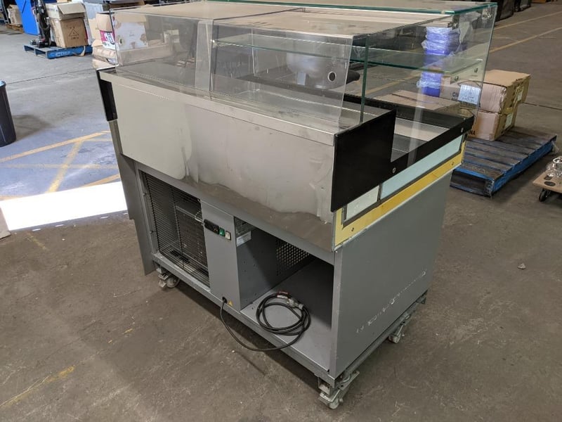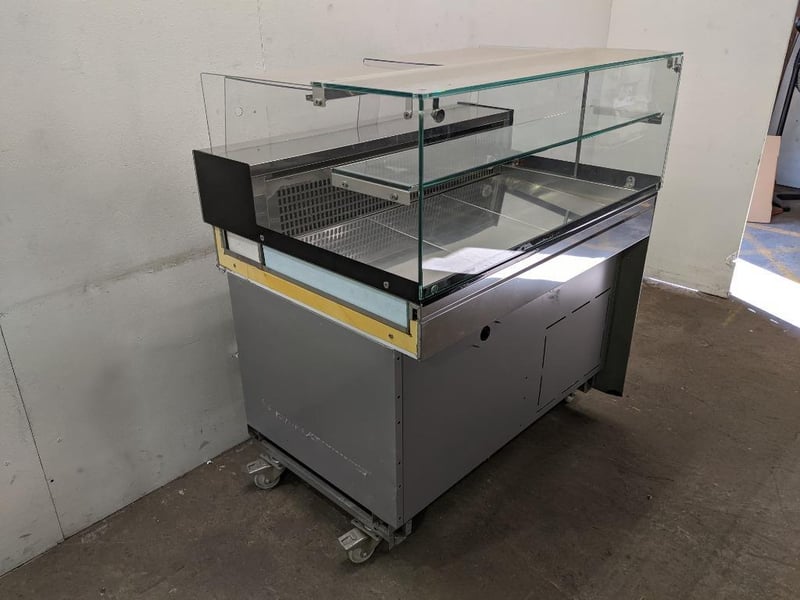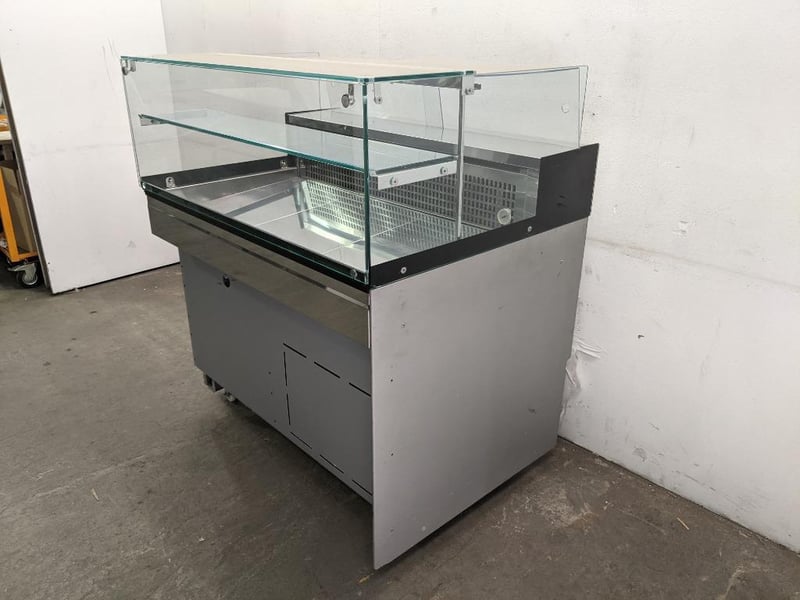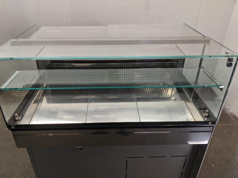 Commercial Food Display, Glass Top & Sides, Built-in Glass Shelf, Steel Base, Temperature Component